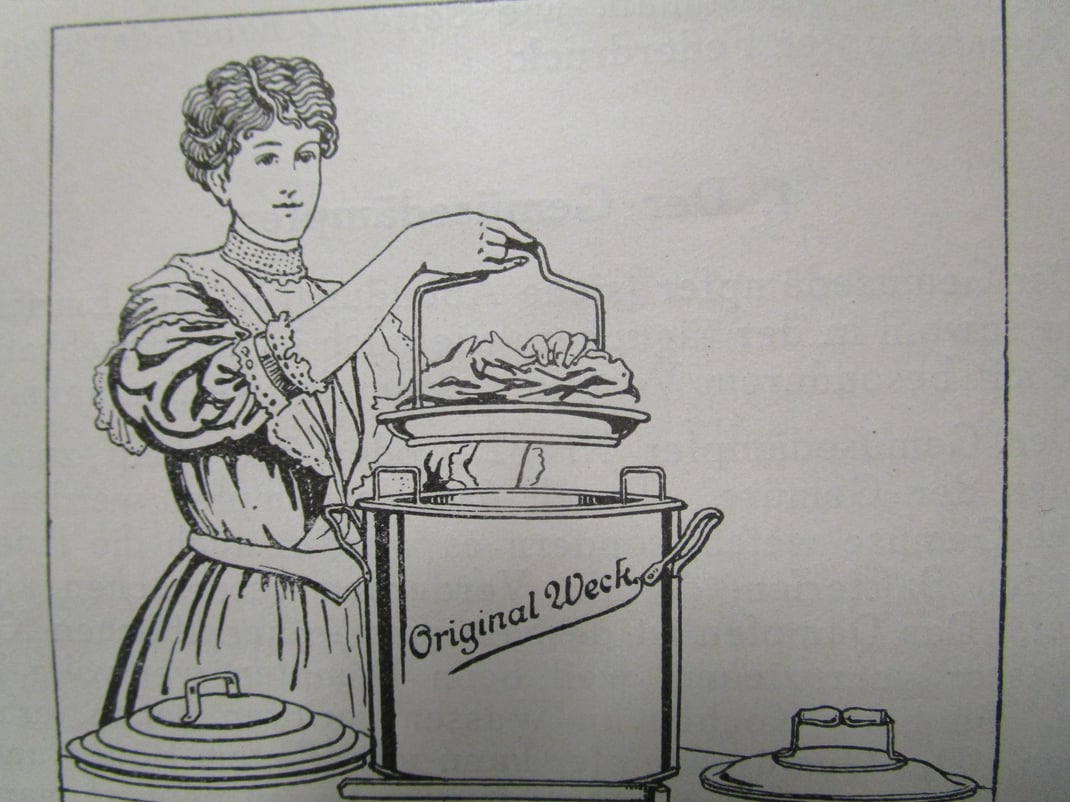Vor 100 Jahren gab es keinen Supermarkt um die Ecke, wo man sich schnell mal eindecken konnte. Zur Jahrhundertwende gab es schon „Weck“- Gläsern, Einkochtöpfe, Dampfentsafter, Kochkisten,