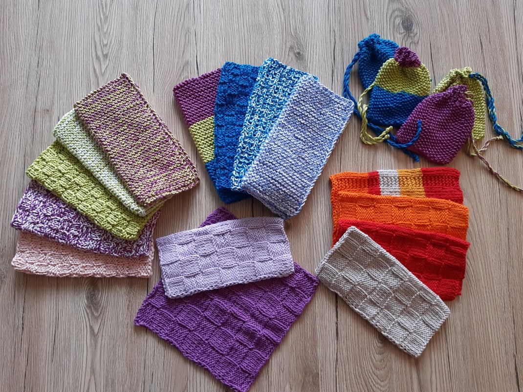 Gestrickte Spültücher aus Bio-Baumwolle lassen sich problemlos bei 60°c in die Waschmaschine stecken und man kann sie immer wieder verwenden.