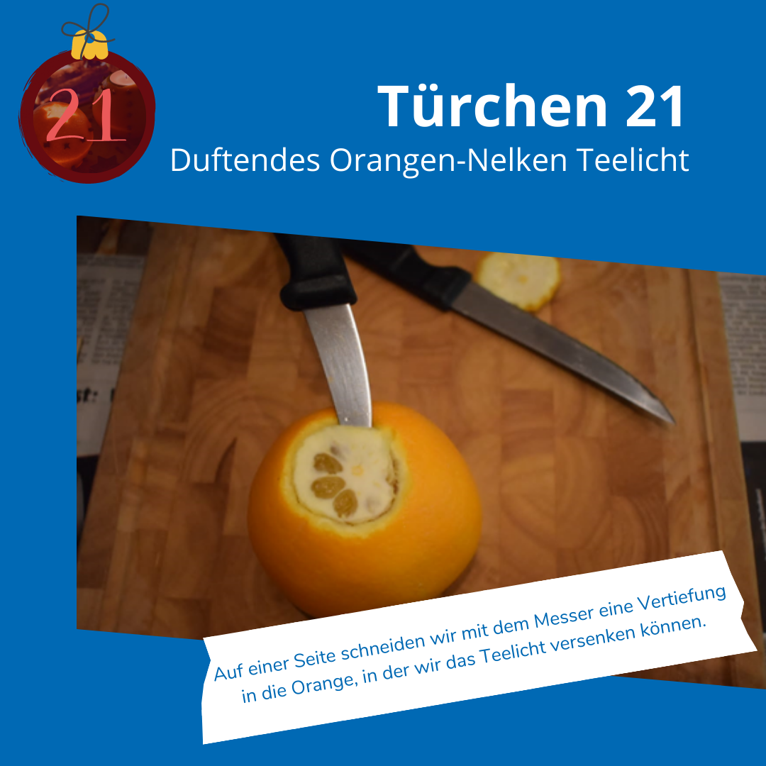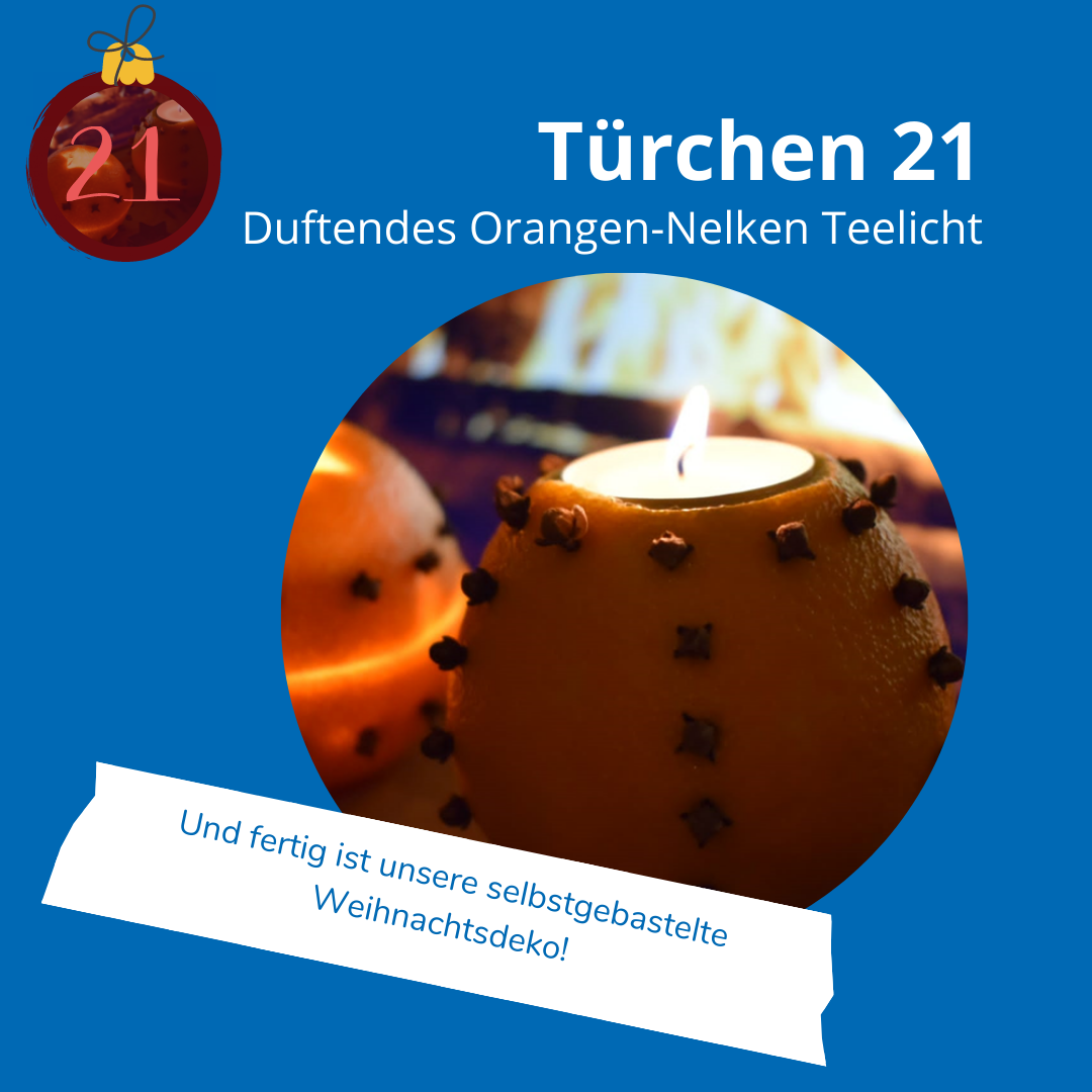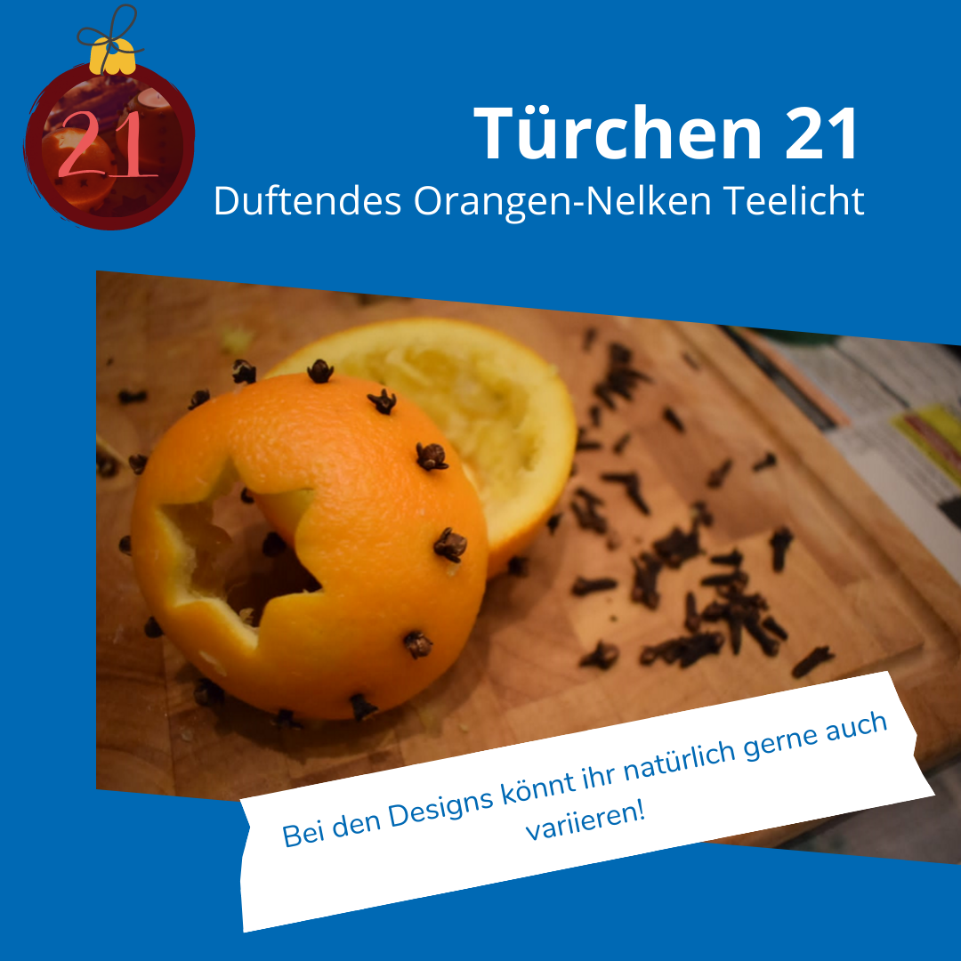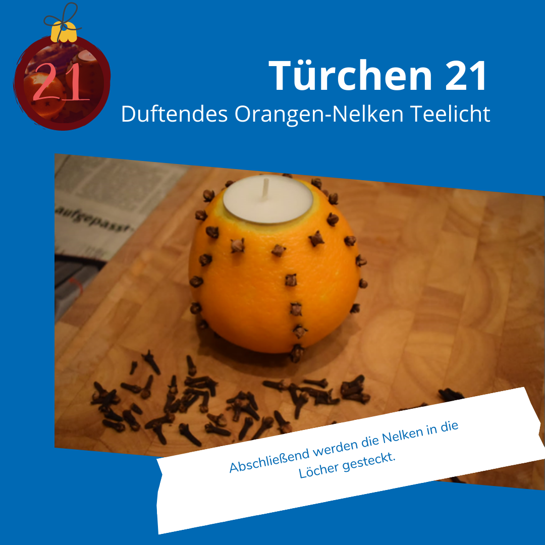 einfaches und nachhaltiges Orangen-Nelken Teelicht, das ganz schnell selbst gemacht werden kann. Am besten fühlt es sich an, wenn man den frisch gepressten Orangensaft gleich dazu trinkt oder in