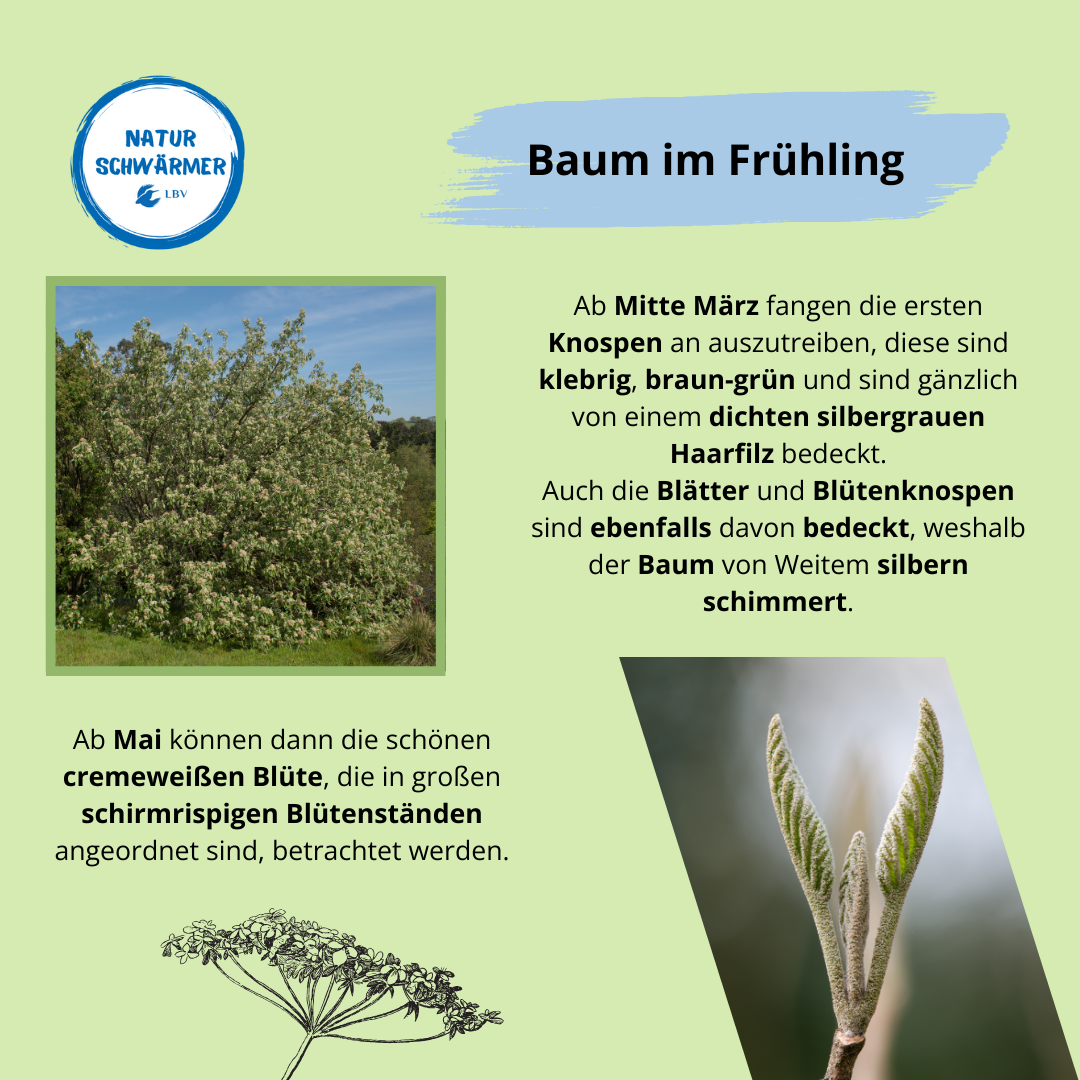 viele kleine Einzelblüten schirmförmig zusammenstehen. Das ist nicht nur bei der Echten Mehlbeere so. Viele Pflanzen haben Blüten, die in solchen Blütenständen angeordnet sind.