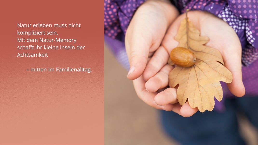 Das Natur-Memory kann zu jeder Jahreszeit gespielt werden, aber besonders im Spätsommer und Herbst gibt es draußen viel zu entdecken: bunte Blätter, Früchte, Zapfen und andere spannende
