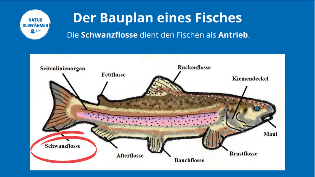 Mit unserem Musterfisch zeigen wir euch, wie ein Fisch aufgebaut ist und wozu die verschiedenen Flossen da sind. So könnt ihr die spannende Welt der Fische noch besser kennenlernen!